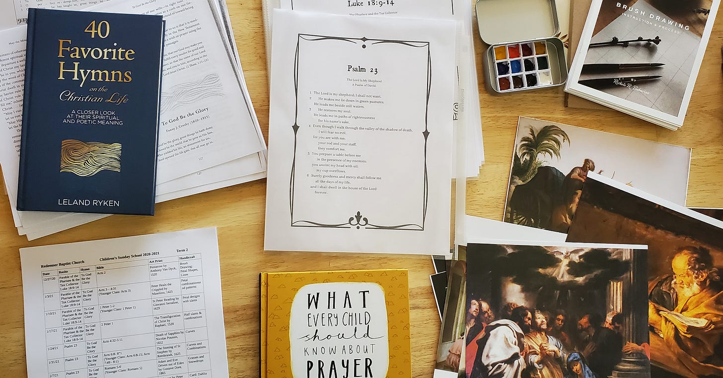 7) And finally being challenged and encouraged in their faith during a read aloud time. We spend the last ten minutes of class listening to a classic such as Pilgrim’s Progress or a longer missionary biography that can take the whole school year to finish. I try to find biographies that are not hero worship or idealized pictures of the Christian life, but ones that show the very real challenges of navigating illnesses, loneliness, difficult personalities, war, not having support, years of not seeing fruit, and yet where God’s work and faithfulness are so clearly displayed. Hearing such stories from the past serves as a cloud of witnesses and give us a hope-filled footing on our own pilgrim paths.