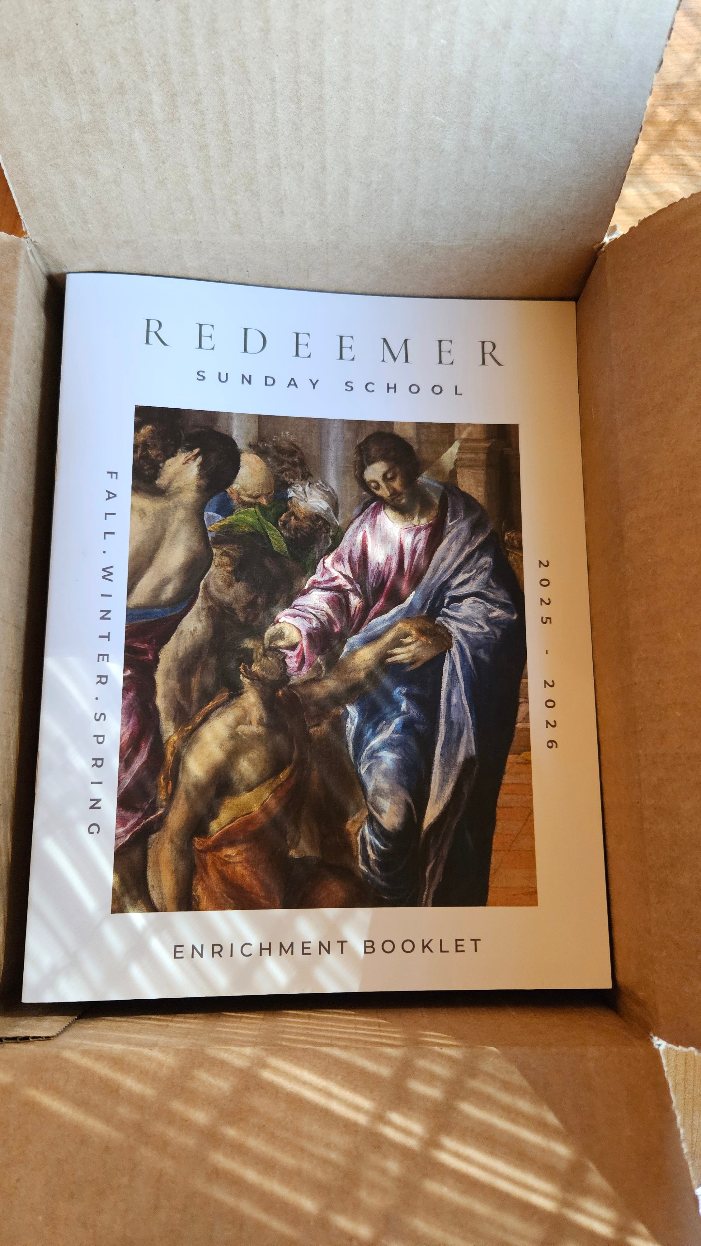 This will be my sixth year creating our own children's Sunday school curriculum. The enrichment booklet is one of my favorite pieces of our class time. These booklets contain our hymns and scripture memorization/recitation passages for the school year. We keep classroom copies and send booklets home for families to use. They are printed on heavy paper and remain in great condition all year long.